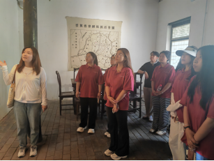 研学首站,师生们怀着崇敬之情走进八路军一二九师纪念馆。在司令部旧址斑驳的院落、珍贵的文物前,在将帅们运筹帷幄的赤岸村,历史的画卷徐徐展开。讲解员深情讲述“九千将士进涉县,三十万大军出太行”的壮阔史诗,刘邓大军不畏艰险、浴血奋战的革命精神深深震撼了每一位学子。他们驻足沉思,重温入团誓词,在红色沃土上汲取信仰力量,厚植家国情怀。