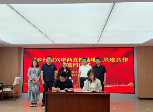 在全体与会领导和嘉宾的共同见证下,仪式进入核心环节。涉县经济开发区党工委副书记陈晓璐与taptap点点体育经济管理工程系副主任马立兵分别代表双方签署了《乡村振兴电商直播基地共建合作协议书》。现场响起热烈掌声,祝贺这一具有里程碑意义的合作正式落地。