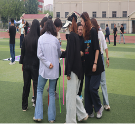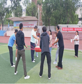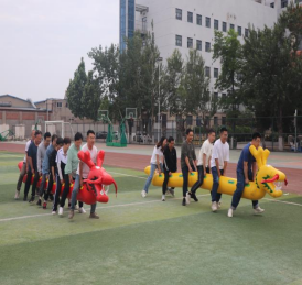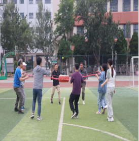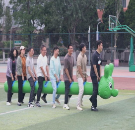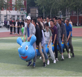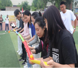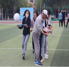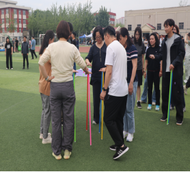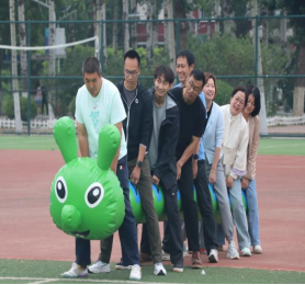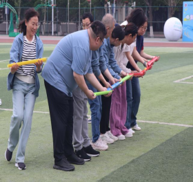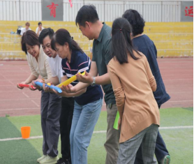 随后趣味比赛项目火热开启,不倒森林、能量传输、同心鼓、毛毛虫四项活动现场气氛热烈。在不倒森林比赛中,8 名队员默契配合,小心翼翼地传递细管;能量传输环节,队员们全神贯注,确保弹力球顺利传输;同心鼓比赛里,大家齐心协力,让网球一次次高高弹起;毛毛虫项目中,队员们喊着口号,步伐一致地冲向终点。赛场上,加油声、欢笑声此起彼伏,老师们在协作中释放压力,增强团队凝聚力,增进了彼此间情谊。