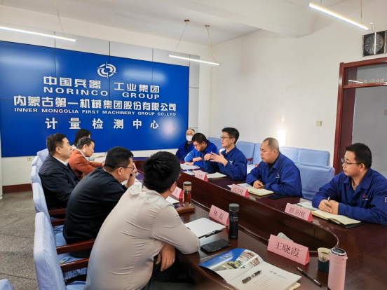 王金栋主任首先对杨理连院长一行的到来表示热烈欢迎,随后介绍了内蒙古第一机械集团股份有限公司的基本情况以及发展历史,重点介绍了公司成立以来在兵器工业领域的突出成果,以及计量检测中心的业务范围和发展情况,期待与学院进一步促进产学研融合,开展协同育人,共同书写校企合作的新篇章。天津晟鑫通标特材科技发展有限公司总经理刘毅就三方合作背景及现状进行了详细介绍,同时他表示要充分发挥公司在航空航天领域的技术、标准等资源优势,助力学院和内蒙古一机在科研创新、技术服务、人才培养方面的深度合作。最后,杨理连院长就学校的基本情况以及绿色智能制造(冶金方向)专业集群、开放型产教融合实践中心等重点建设项目进行了详细介绍,并表示三方要充分发挥好各自优势,聚焦应用研究、技术开发,开展产学研合作,服务企业生产一线,不断提升学校对产业发展的贡献度,实现合作共赢。