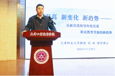 2024年11月29日下午,taptap点点体育在学院六角报告厅举办“新双高”建设专题培训会,旨在推动学院“双高校”建设,提升教师对职业教育发展趋势的理解。学院党委副书记、院长杨理连出席并主持会议,学院全体领导班子成员、全体中层干部及各系部全体教师参会,本次会议特邀天津职业大学原校长刘斌教授做主旨报告。