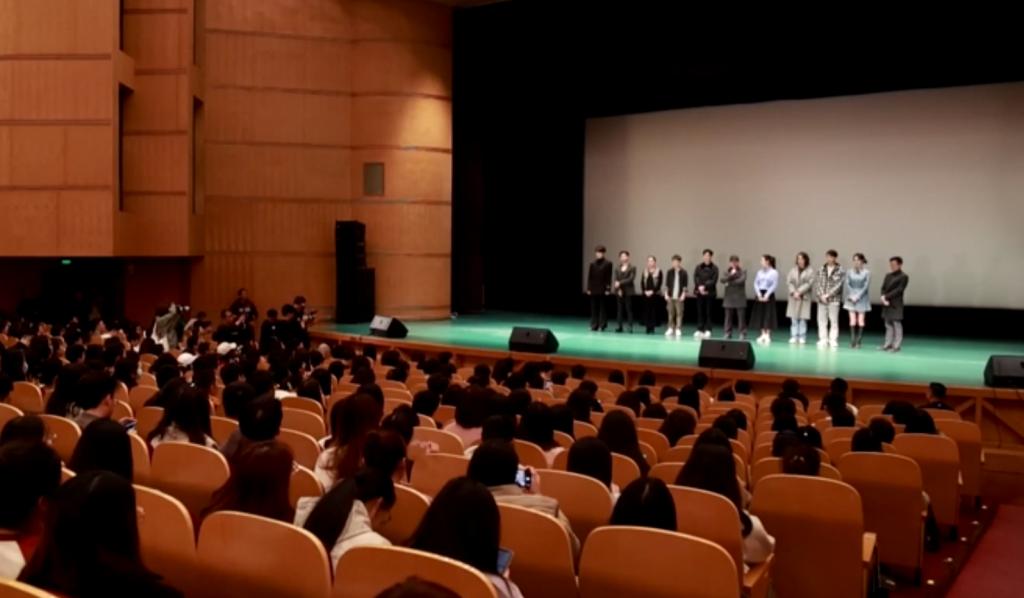 在首映式上,来自北京大学,清华大学,中国人民大学,北京师范大学、天津大学、天津师范大学等近千名师生一起观看了电影。我院思政课部卢婉婷老师作为电影编剧组成员,特邀参加首映式。影片由天津市委宣传部、市教育两委联合出品,由王润泽、李建义、林永健等领衔主演,唐国强等特别出演。以轻喜剧的风格,讲述了普通青年教师孙恒在执教过程中,面对困境和难题如何成长和转变的故事,引发大家对如何当好一名教师和新时代育人使命的思考。影片结束后,电影主创人员还和观众们进行了互动,分享了影片拍摄过程中的花絮和心得。