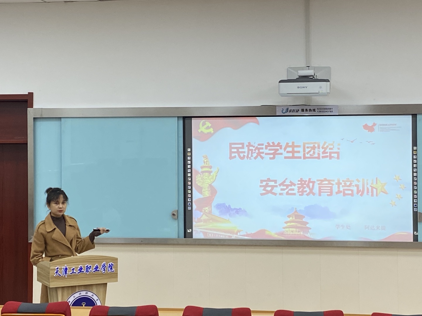 就业办周军老师、保卫处杨明主任和民族辅导员阿达来提老师分别对就业指导、学生突发事件处理及危机预警和少数民族学生安全教育等方面进行了讲解。