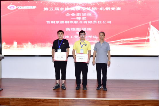 随后进入大赛闭幕式,本届大赛共评选出炼钢单项奖17名,轧钢单项奖16名,团体奖6名,大赛突出贡献奖2名。京津冀三地金属学会和学院领导出席大赛闭幕式并为获奖团体和个人颁奖。我院选手在本次大赛中表现出色,分别斩获了高校组团体一等奖和轧钢单项一等奖,学院获得大赛突出贡献奖。