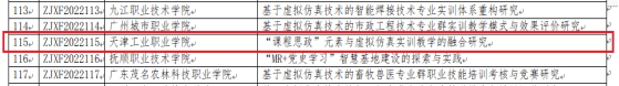 近日,2022年度教育部《虚拟仿真技术在职业教育教学中的创新应用》专项课题拟立项名单公示,来自全国高职院校的277项课题获批。由我院工业技术系李秀娟老师主持的课题《“课程思政”元素与虚拟仿真实训教学的融合研究》名列其中。