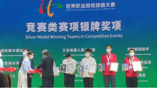 我院机械工程系教师王亮,学生甘佰龙、曹勇和外籍选手Ajayi Akinola Oluwaseyi、Omojayogbe Dolapo Mary、Adeyinka Taye Iyinoluwa组成联合赛队,通过努力拼搏,克服各种困难,夺得机电一体化项目团体银牌。