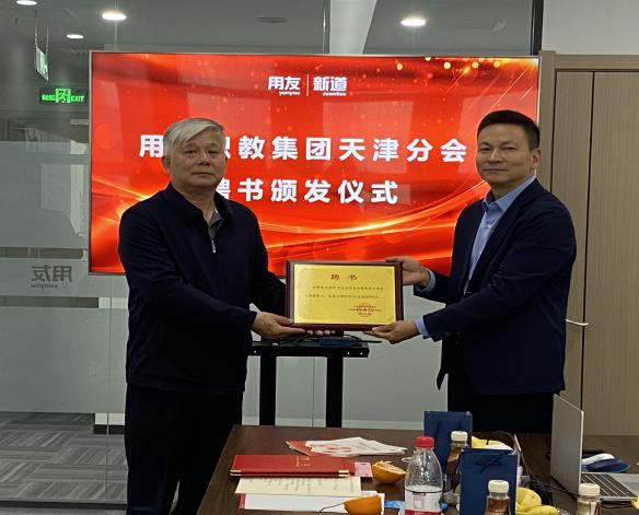田总经理表示用友企业愿意与学院在人才培养、师生实践成长、教学成果申报、师生顶岗实践、横向课题开展、加强内涵建设等方面加强合作,并聘任孔院长担任用友职教集团天津分会理事长。