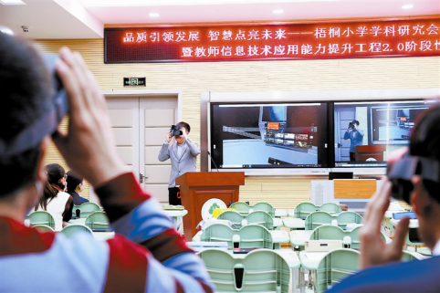 本年度我院与天津市梧桐小学的初步建立战略合作关系,在课后辅导课程中将VR技术引入到思政课堂之中,利用VR课程中的资源引导学生树立关于历史、民族、国家及文化的正确观点。课程中诸如红军爬雪山过草地、飞夺泸定桥等场景通过VR这种情景认知的教育手段展现在学生眼前,使学生身临其境的感受到中国共产党和人民军队为了今天的美好生活而付出的巨大努力和牺牲。