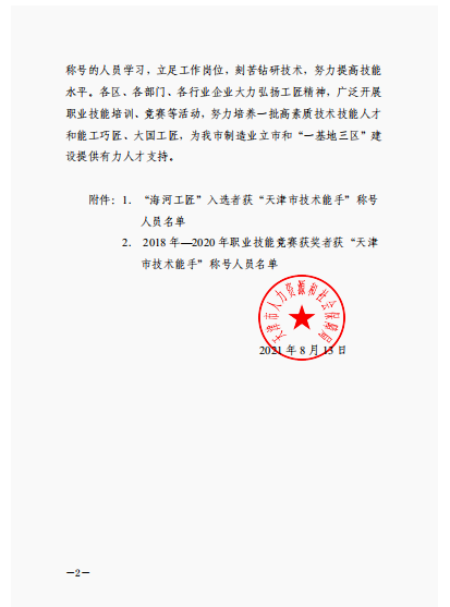 近日,天津市人社局授予2018年-2020年天津市市级一类竞赛各职业(工种)第一名获奖者“天津市技术能手”称号。我院机械工程系谢金涛、李连亮、戴冬晨三名老师以2019年天津市智能制造应用技术技能大赛暨第三届全国智能制造应用技术技能大赛天津选拔赛第一名的成绩获此称号。