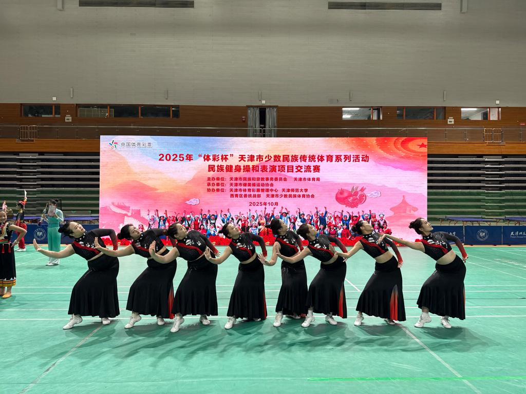 10月18日,由天津市民族和宗教事务委员会与天津市体育局联合主办的2025年“体彩杯”天津市少数民族传统体育系列活动民族健身操和表演项目交流赛圆满落幕。共有来自全市15所高校参赛,最终经过激烈的角逐taptap点点健美操队取得了规定套路《美丽中国》二等奖,以及民族健身操自选套路《傣之歌》冠军。