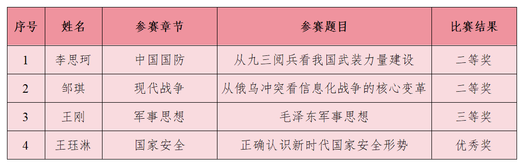 为深入贯彻落实习近平总书记关于加强全民国防教育的重要指示要求,筑牢高校军事理论课教学根基、锤炼教师队伍专业能力,搭建校际教学交流平台,促进教学质量与育人成效同步提质,近日,由天津市教育委员会、天津警备区战备建设局联合主办的第一届天津市高校军事理论课教学能力大赛圆满落幕。