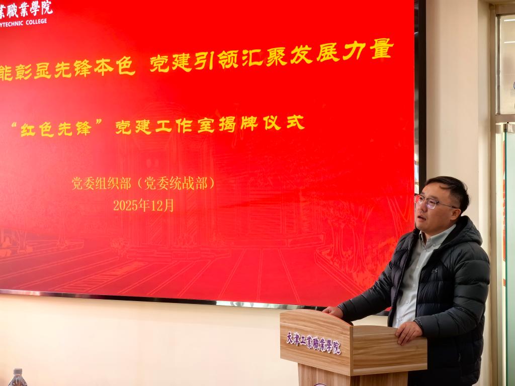 仪式由党委组织部(党委统战部)部长主持,市教育两委机关党委、学院党委相关领导,党委学生工作部(学生管理部)、团委负责人,五系党支部副书记,“强基赋能” 库优秀年轻干部及学生干部代表齐聚现场,共同见证这一兼具政治意义与育人价值的重要时刻。市教育两委机关党委办公室副主任伊东、学校党委书记汪坪共同为工作室揭牌。