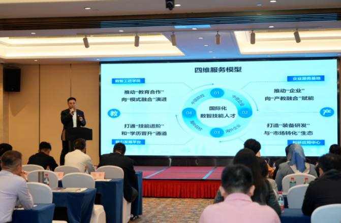 此外,众多国内外高校及学术机构专家,围绕工业互联网发展、产业数字化转型、国际化人才培养标准等议题开展专题报告,分享前沿理念与研究成果;国内部分企业代表则带来产教融合实践案例与前沿技术应用成果,为共同体国际化合作提供多元视角与实践参考。