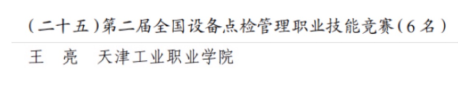 我院机械工程系王亮教师在人社部2021年全国行业职业技能竞赛第二届全国设备点检管理职业技能竞赛职工组“机械设备点检员”项目获得第二名好成绩。经过两年的评选最终荣获“全国技术能手”荣誉称号。