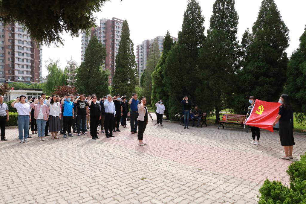 在纪念馆广场前,学院领导班子成员为新党员佩戴党员徽章。全体党员面向党旗在党委书记汪坪同志的领誓下重温了入党誓词。大家神情庄重、精神饱满,声音铿锵、句句千钧,再一次接受了心灵的洗礼,进一步坚定了立场信念和初心使命。