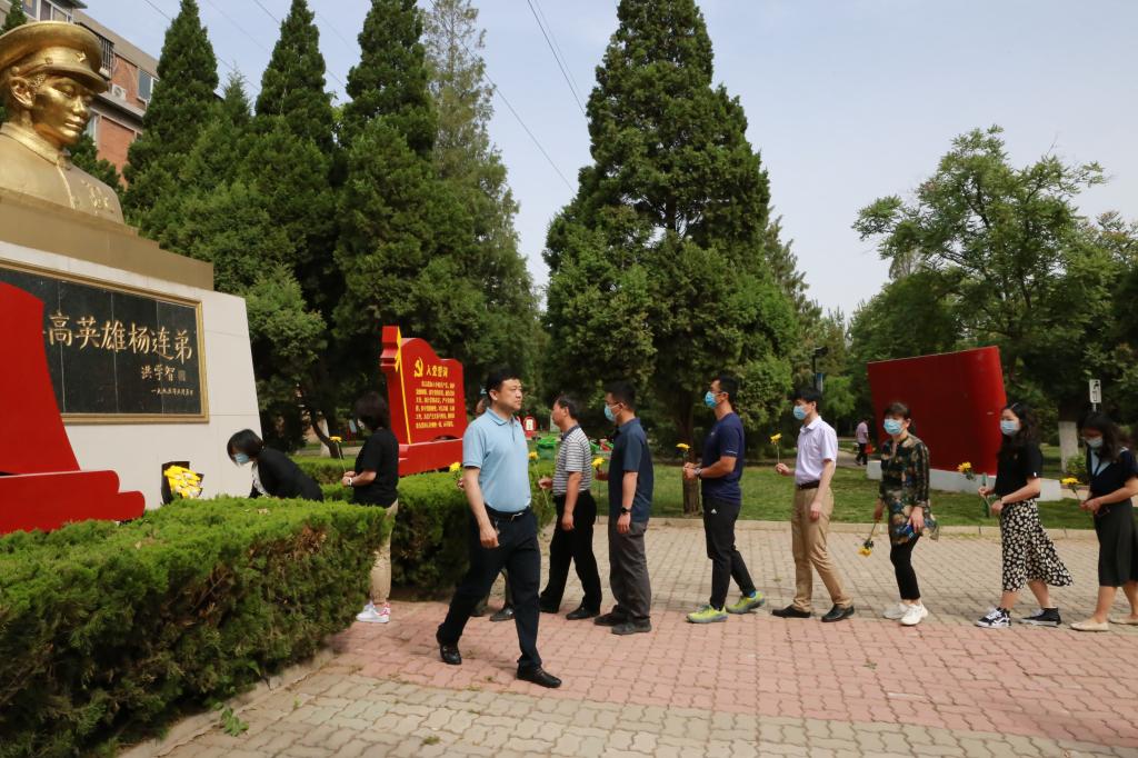 在中国共产党成立百年华诞到来之际,为扎实推进学院党史学习教育,厚植爱党爱国情怀,瞻英雄事迹、仰烈士精神,5月26日,学院领导班子成员、各党支部书记和新发展的预备党员等37名同志,乘车前往北辰区杨连弟烈士纪念馆,开展“缅怀革命先烈、传承红色基因”主题党日活动。