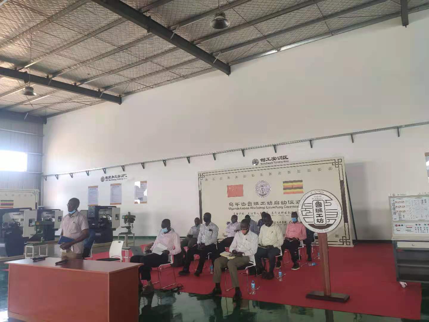 乌方会场为乌干达鲁班工坊实训基地,包括埃尔贡职业技术学院校长穆利马·保罗,副校长尼古拉斯·奥卡纳,教学主管及对接鲁班工坊培训课程的主讲教师们共计20余人参会。