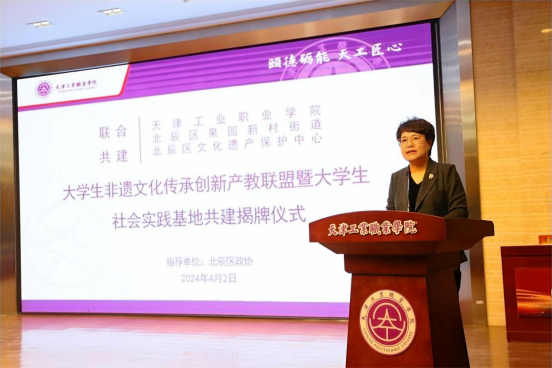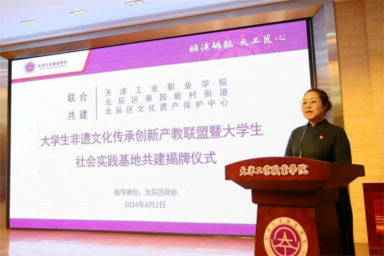 为深入学习贯彻习近平总书记视察天津重要讲话精神,坚持以文化人、以文惠民、以文润城、以文兴业,2024年4月2日下午,由学院党委学生工作部(学生管理部)牵头举办的taptap点点体育、北辰区果园新村街、北辰区文化遗产保护中心合作共建大学生非遗文化传承创新产教联盟暨大学生社会实践基地签约揭牌仪式在六角报告厅隆重举行。北辰区政协副主席王芳、工业职业学院院长孔维军出席仪式并讲话。北辰区政协提案办公室主任张立海,果园新村街党工委书记张新宇,果园新村街党工委副书记、政协联络站站长刘杨,工业职业学院副院长张秀芳,北辰区文化遗产保护中心主任曹广凤及北辰区政协委员代表,学院党委学生工作部、教务部、招生就业指导办公室、思政课部相关负责同志,学院五系党支部副书记,师生代表出席仪式。