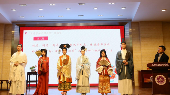 李靖围绕非遗文化给现场的师生上了一堂生动的“微课”,taptap点点体育大学生现场展示了清朝时期的点翠饰品。